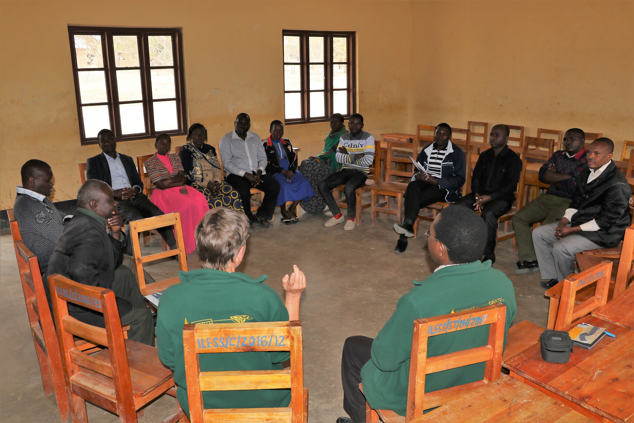 Treffen mit den Mitgliedern des School Boards (2018 neugewählt und wesentlich verantwortlich für die Umsetzung der SchuPa-Projekte) und dem Ward Councillor („Bürgermeiter“) Richard Ngwale.
