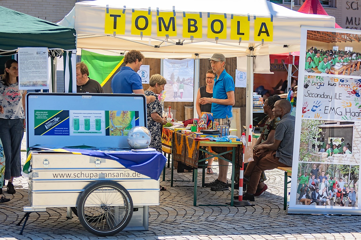 In the global North money is not harvested from the trees, but it is collected through hard work, e.g. with the SchuPa Tombola during the Streetlife Festival in Haar. Everyone is so busy. It is also an exposure of our partnerships.