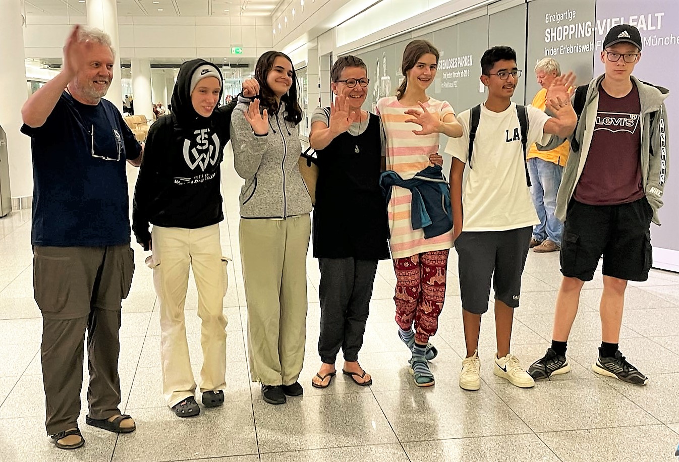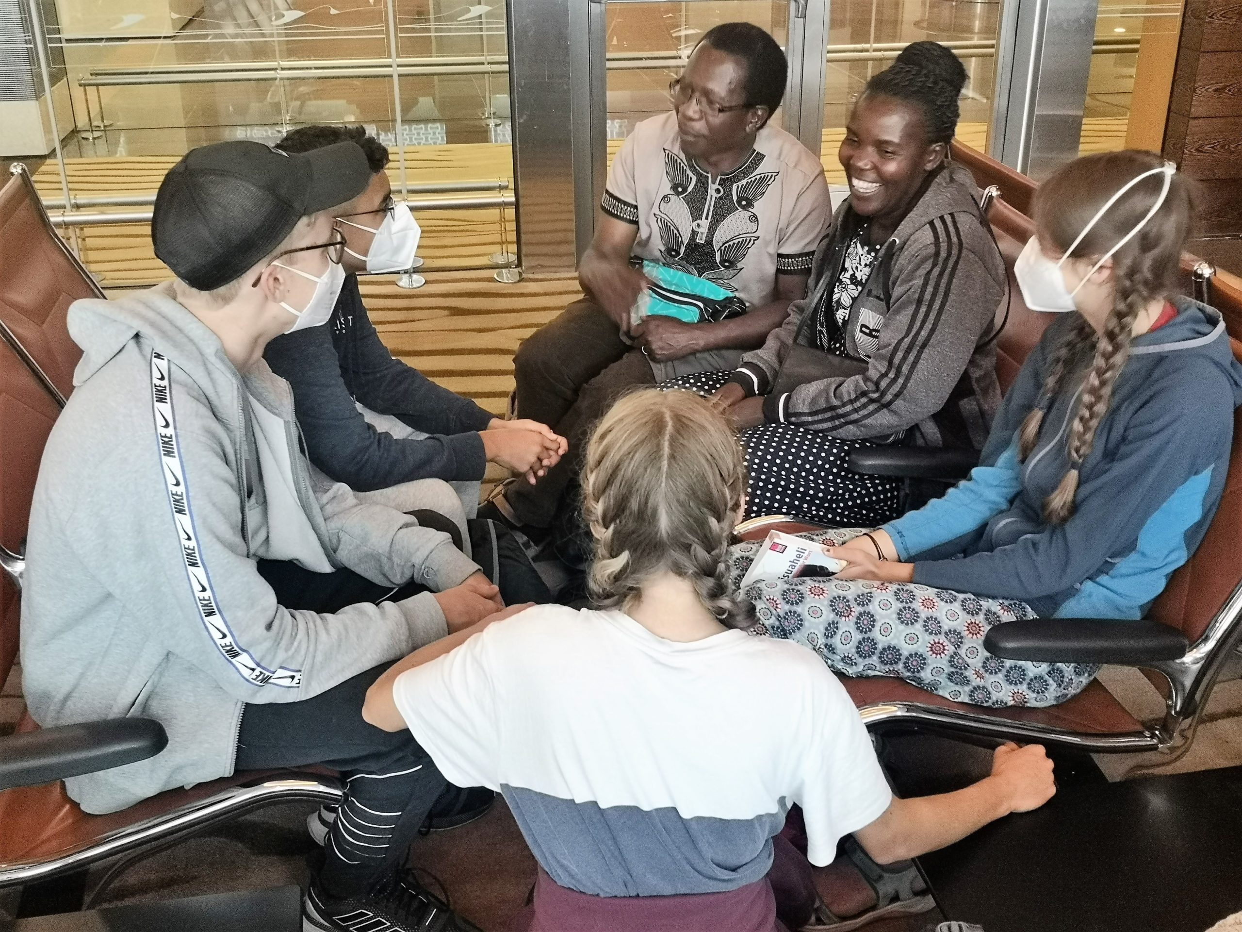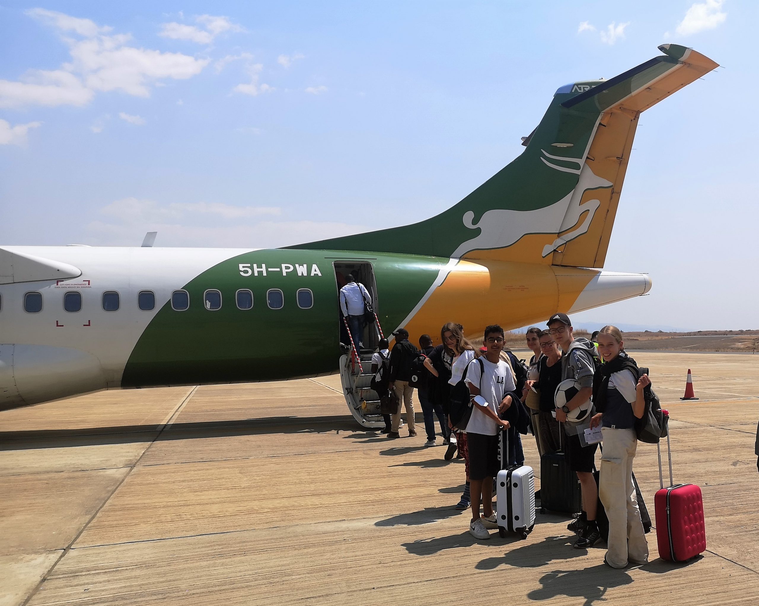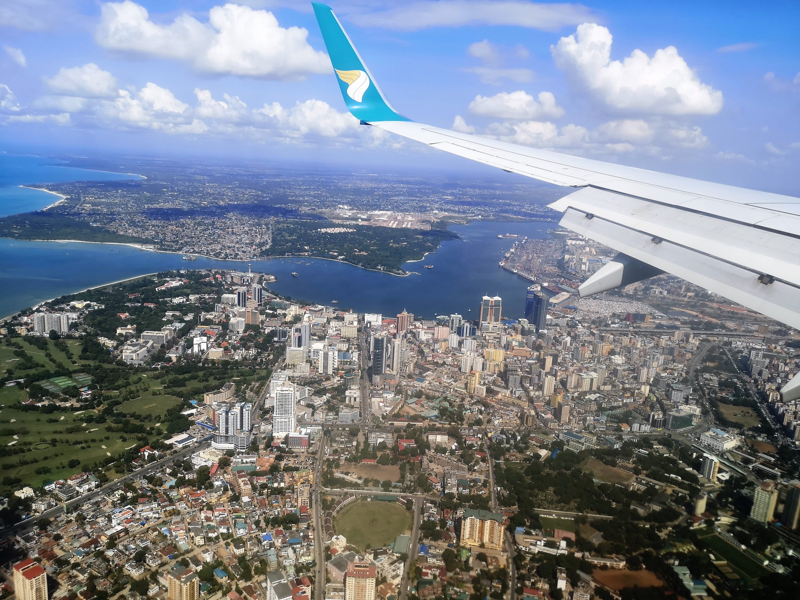 Am 25. Juli um 22.15 Uhr heben wir – Grete, Julia, Lioba, Korbinian, Saim sowie Christl und Edwin – gemeinsam mit unseren tansanischen Incoming-Gästen vom Münchner Flughafen ab. Nach Umstieg in Muscat/Oman und Zwischenstopp auf Sansibar landen wir einen Tag später um 14.30 Uhr am Julius Nyerere International Airport in Dar es Salaam.