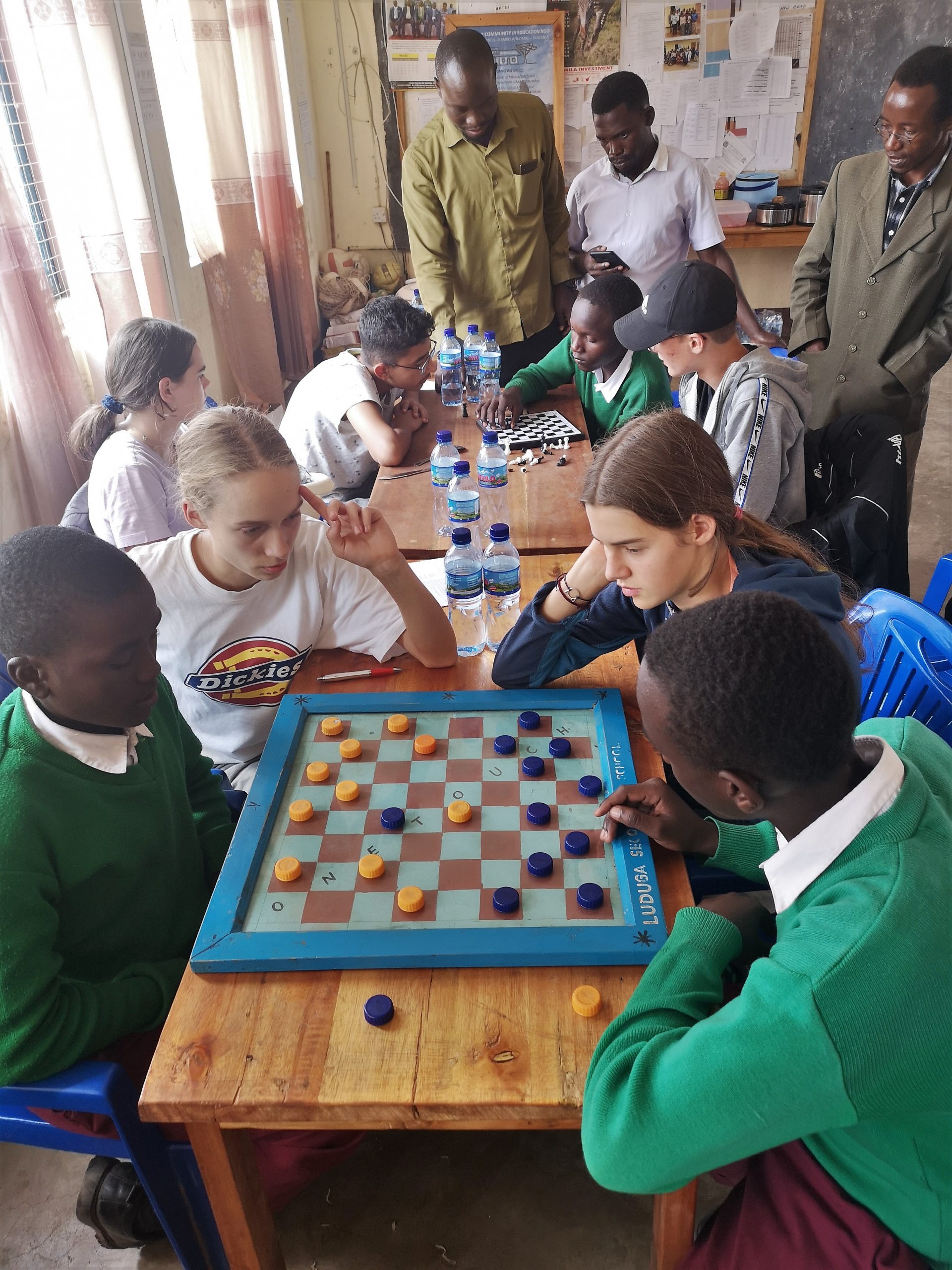 Wir richten uns in unserem „Zuhause“ ein, nehmen uns Zeit zum Ankommen: Wäschewaschen, Tagebuch schreiben, Schachspielen, Lesen – wir erkunden die Umgebung beim Spaziergang am Halali-River und im Ortszentrum von Ilembula. Wir reden und lachen und tauschen uns aus – wir lernen uns immer besser kennen. Schule – mal ganz anders!