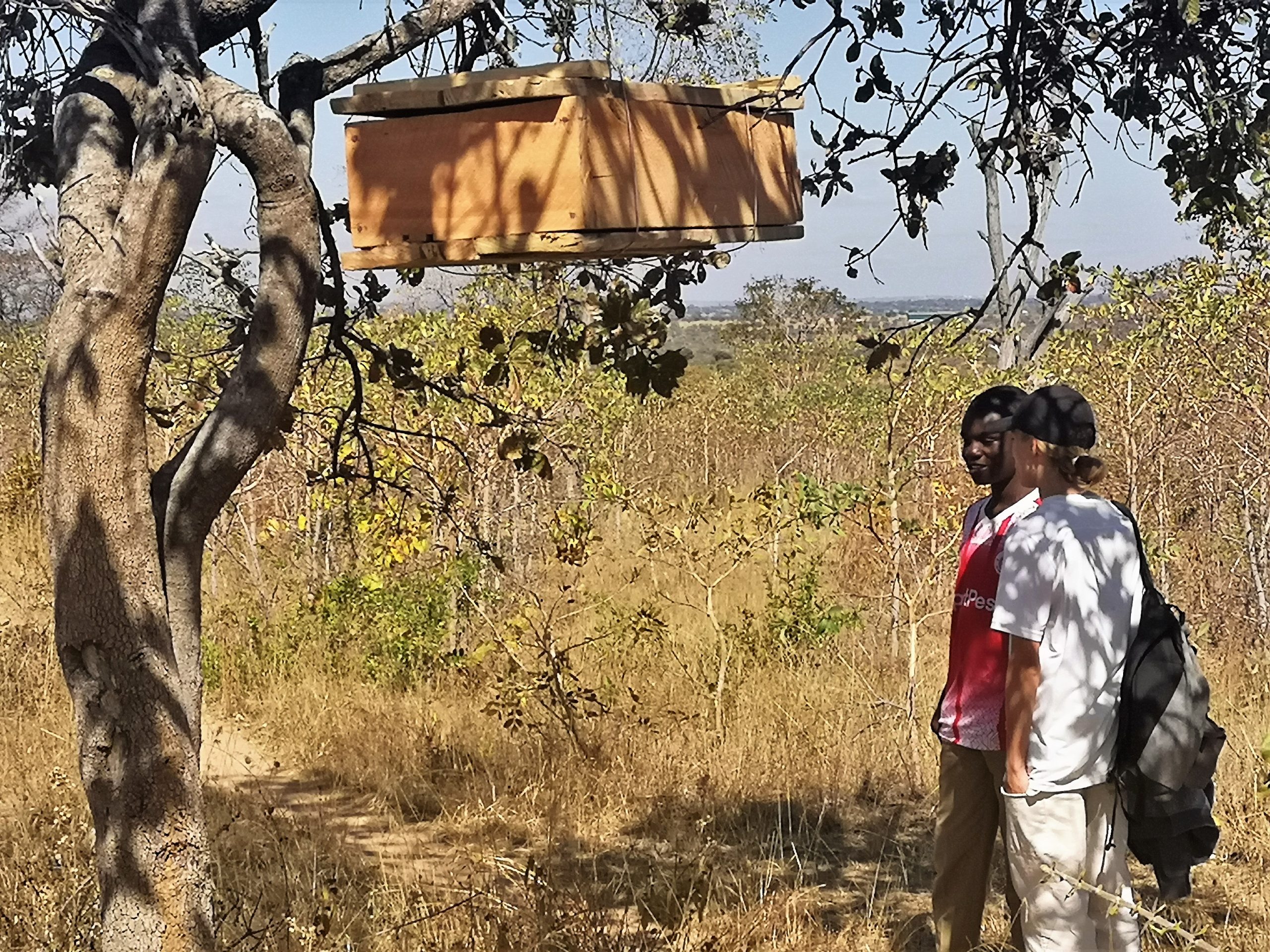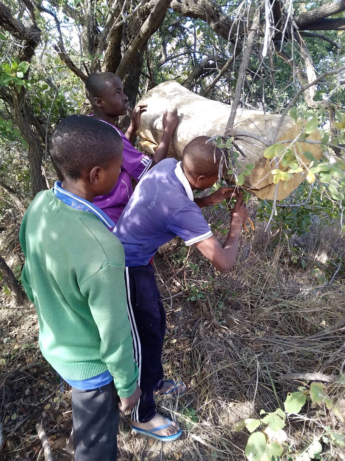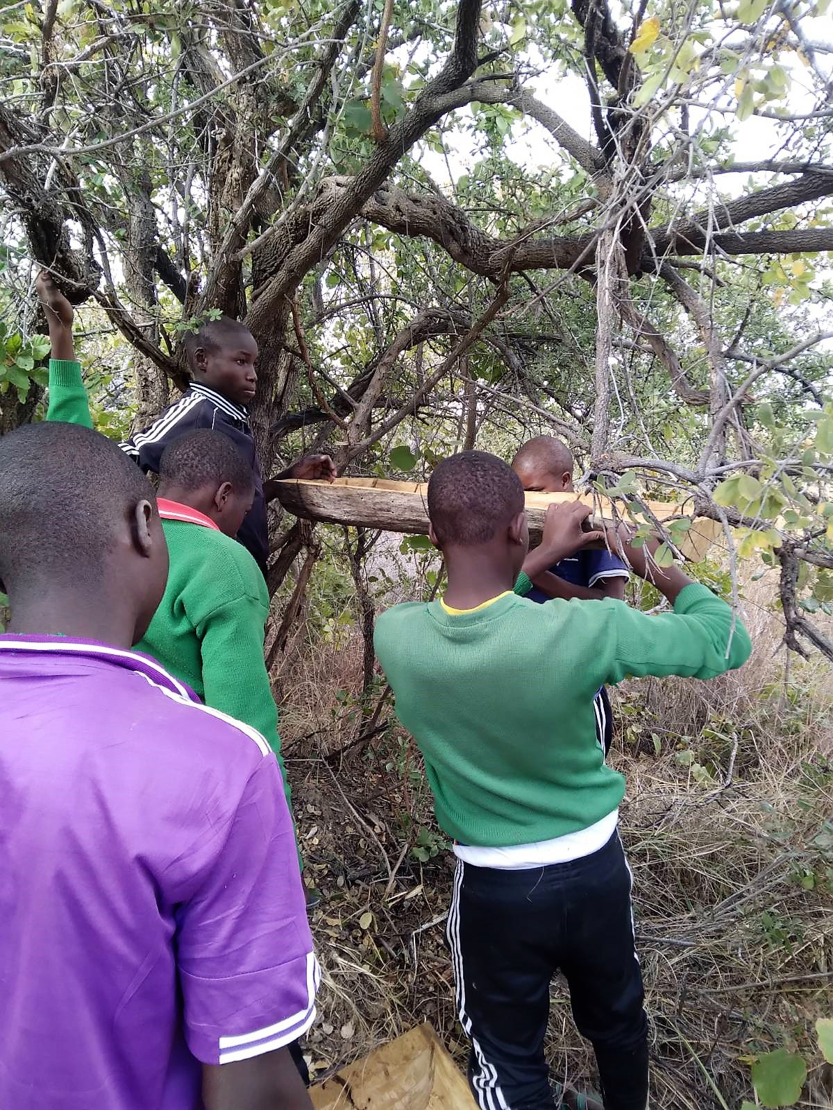 Inzwischen hat Tomson 34 Beuten/Bienenbehausungen in der Conservation Area der Luduga Secondary aufgehängt.