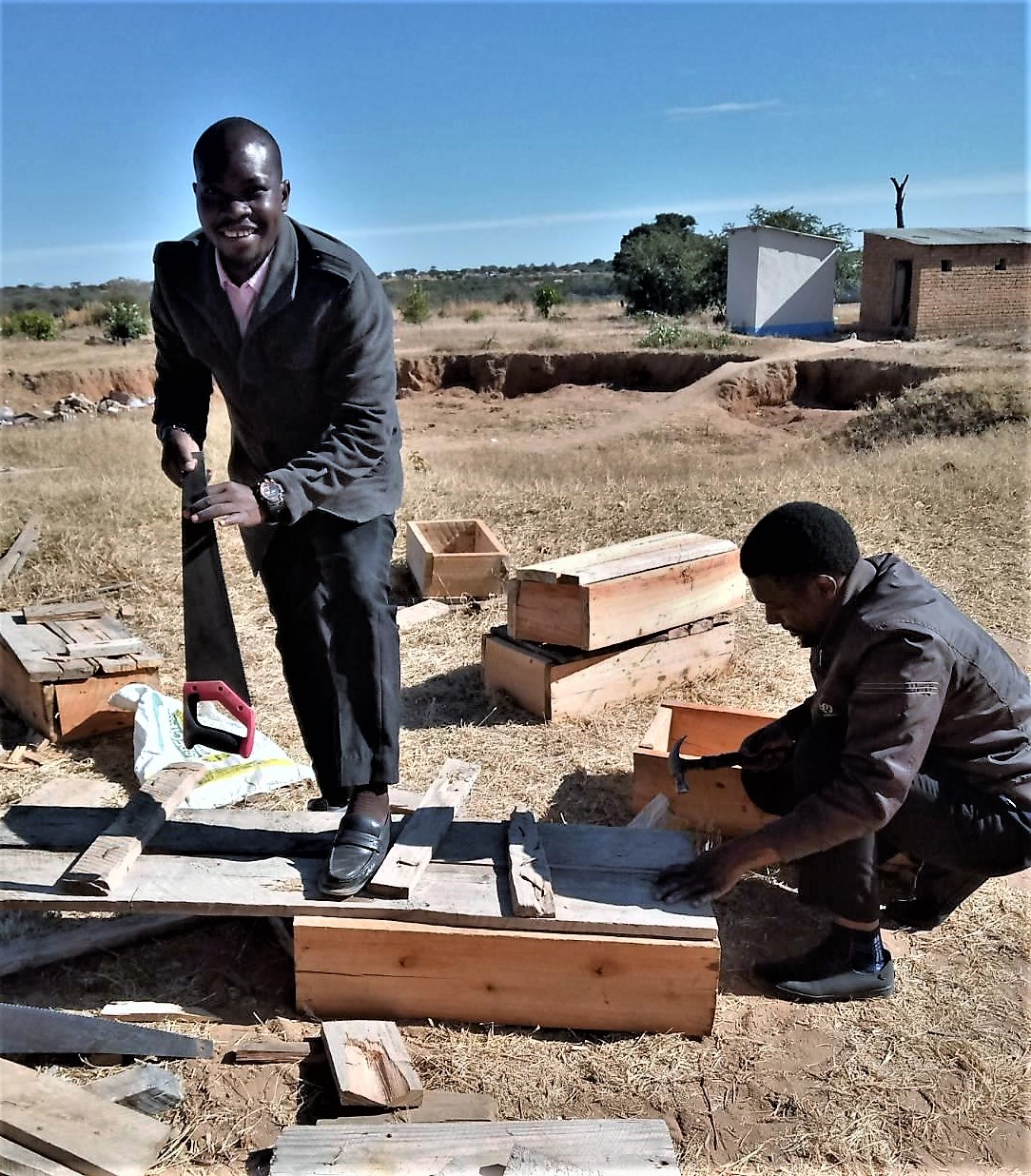 I put up beehives at Luduga Village at the place where forest is found; I started beekeeping in 2018 but after your workshop in January this year on building up one’s self-confidence hence I decided to add more beehives – me as a teacher and therefore as a mirror of society – so I reflected what to do: I now teach both in school and village on how to make beehives and how to harvest honey as well as to prepare products of honey. Yes, I teach my colleagues and students participating fully in the process of making beehives as well as planting trees at a reserved area at LUDSS; I believe, the students are the future generation, so the knowledge they acquire will help them to be self-employed rather than depending on employment from the government. On the reserved area we are planting fruit trees, also we have ten beehives and we will add ten more because about the forest we are in preparation. I hope in school we will start implementation in May, my burning desire is to see the whole community of LUDSS is rehabilitated physically and mentally. I will teach people at school and the village who are interested during holidays concerning the making of beehives and the importance of environmental conservation for sustainable use.