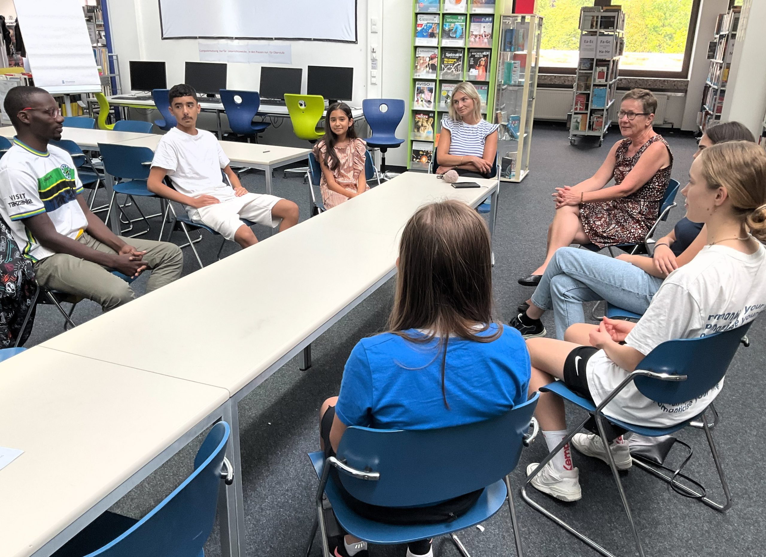 Bei der Gesprächsrunde am Nachmittag hatten SchuPa Schüler:innen die Gelegenheit, sich mit Solomon auszutauschen. Auch hier zeigte sich Solomon engagiert und stellte von sich aus zahlreiche Fragen, die das Gespräch am Laufen hielten.